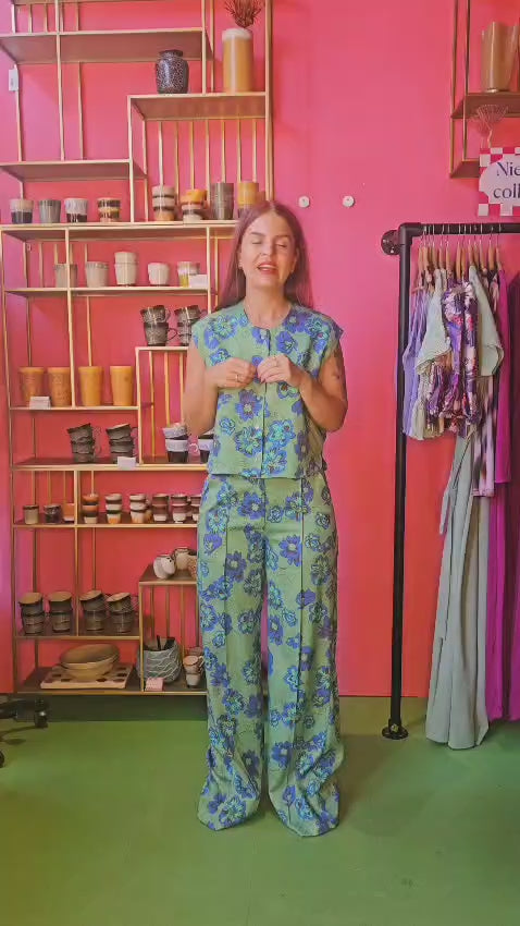 For days when prints do the talking. De HOLLY pants is een wijde broek in de rijke print FOREST FLOWER. De soepele stof valt mooi langs het lichaam en de elastische achterkant van de tailleband zorgt voor extra comfort. Combineer met een effen blouse of de matchende top. Zoals de GILLY gilet of de FLOOR blouse. A statement piece you’ll want to live in.